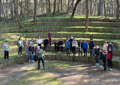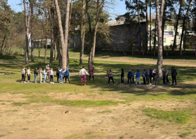 Nakon ručka uslijedio je posebno dinamičan dio programa, srednjovjekovne igre u organizaciji Udruge Sveti Juraj. Učenici su se okušali u raznim zabavno-edukativnim aktivnostima poput gađanja lukom i strijelom, potezanja užeta, skakanja u vrećama i drugim igrama koje su ih nakratko vratile u prošlost. Završni dio izvanučioničke nastave bila je šetnja Đurđevačkim pijescima, jedinstvenim geomorfološkim i botaničkim rezervatom, gdje su učenici upoznali posebnosti pješčanih dina, rijetkih biljnih vrsta i osebujne prirodne baštine toga kraja.